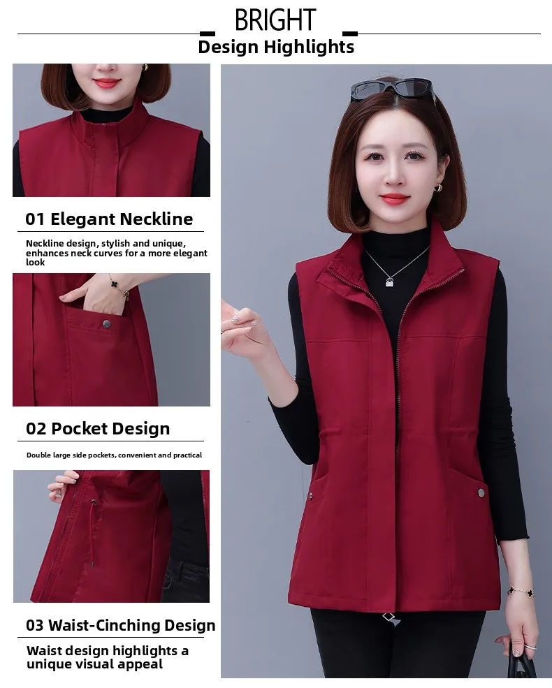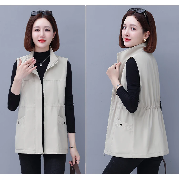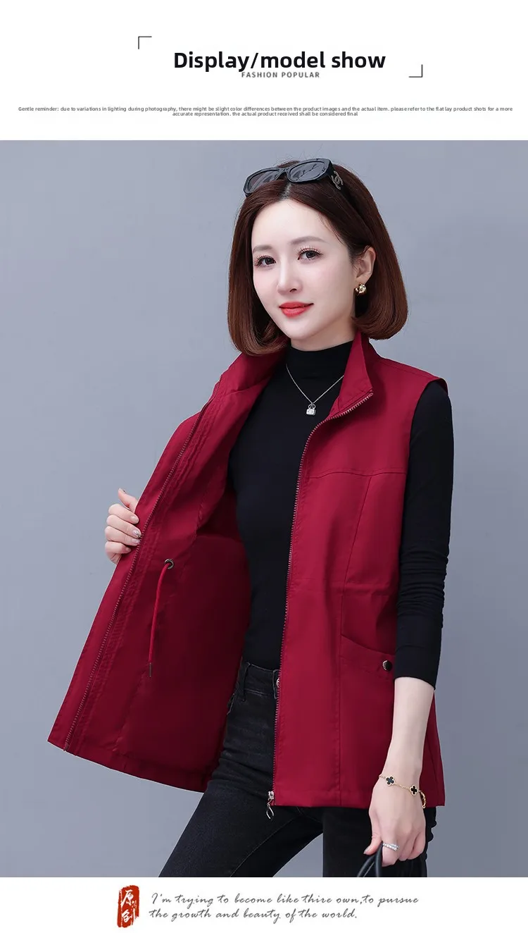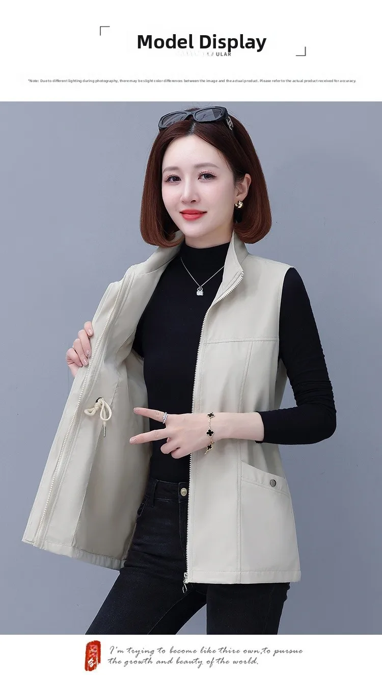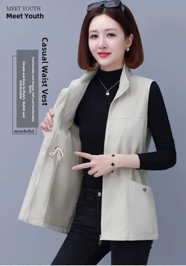 Spring Autumn Women's Waist-Cinching Vest Outerwear Jacket plus Size Slimming Fashionable Polyester Short Zipper Casual