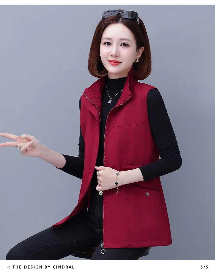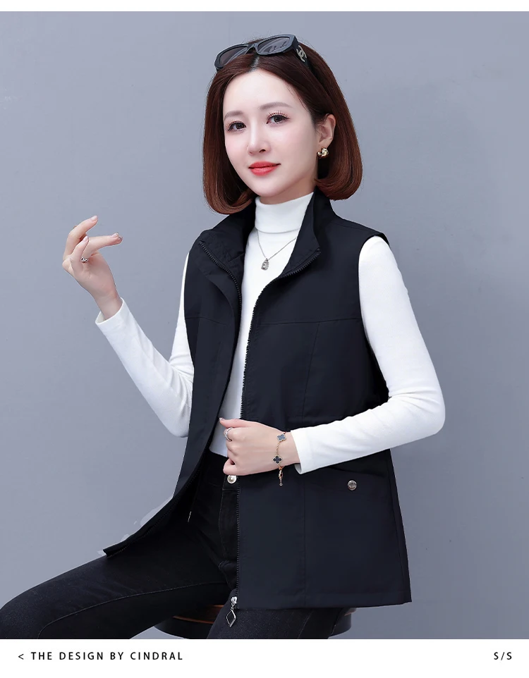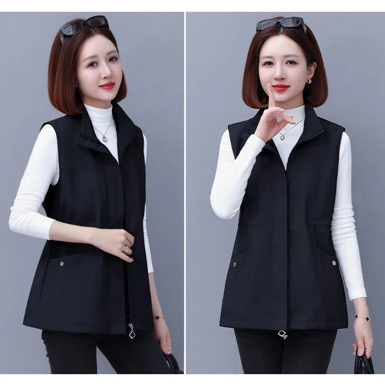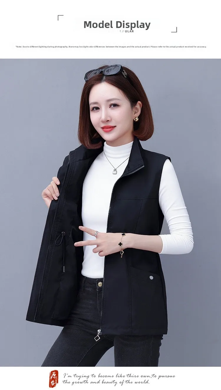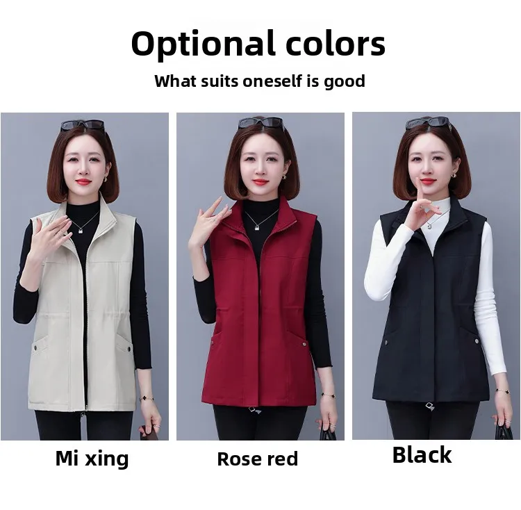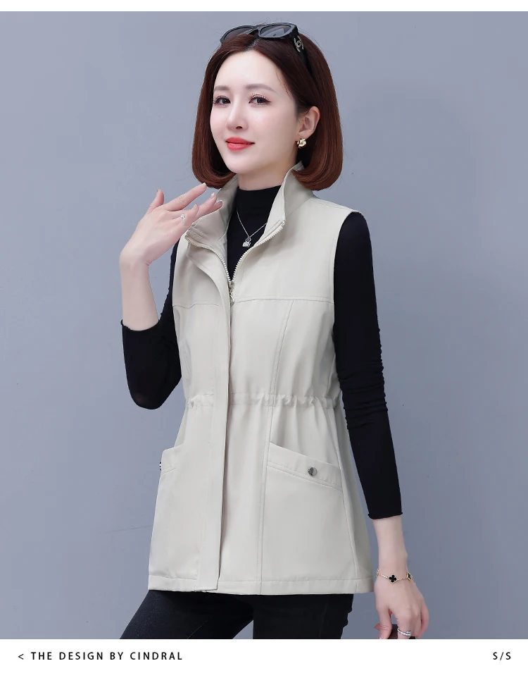 Spring Autumn Women's Waist-Cinching Vest Outerwear Jacket plus Size Slimming Fashionable Polyester Short Zipper Casual